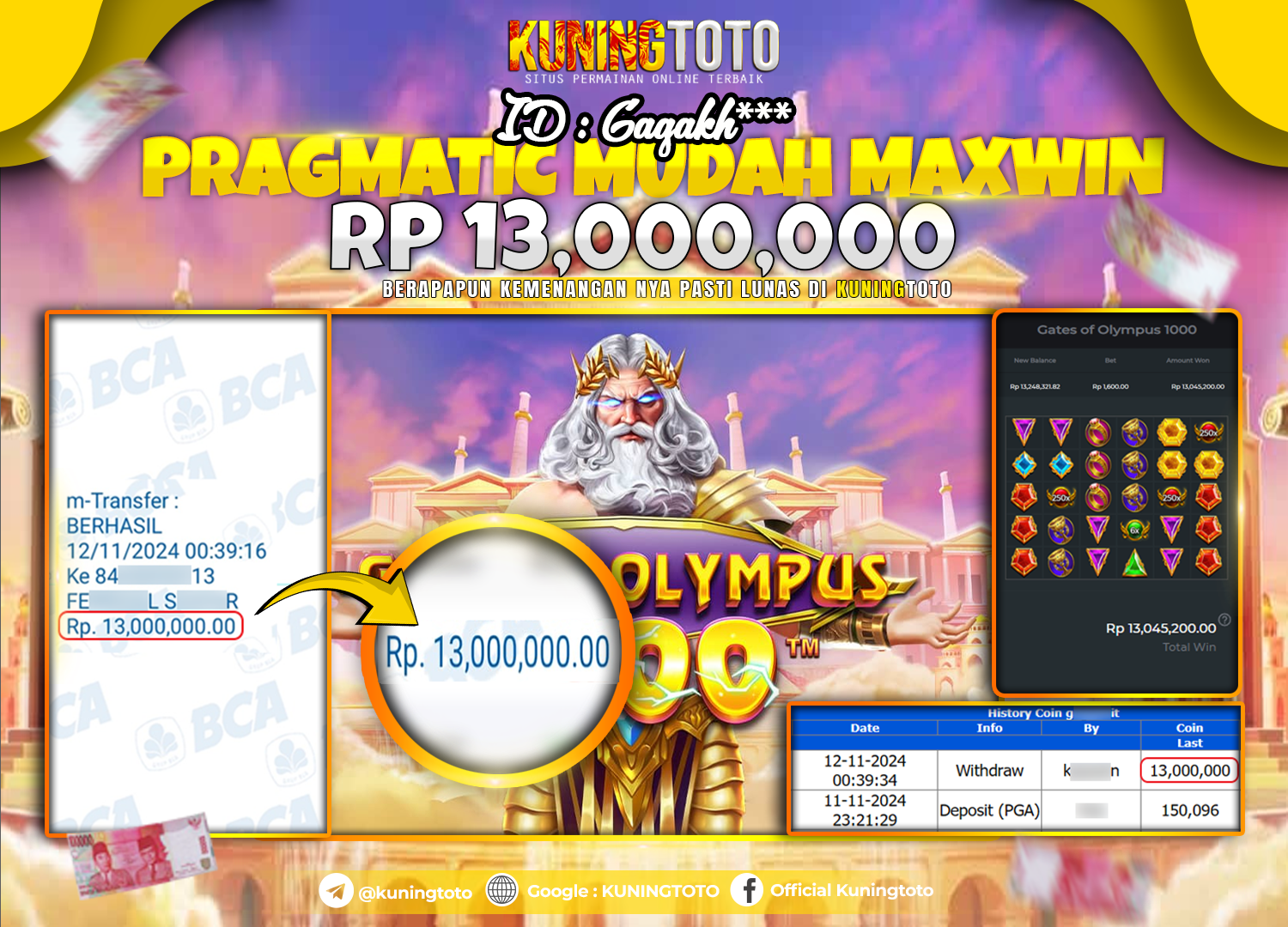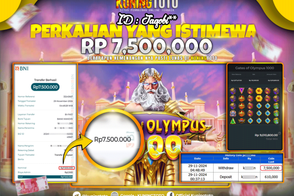 Bukti JackPot Slot Member KUNINGTOTO 12 November 2024 Gates Of Olympus 1000 Memenangkan Jackpot Permainan Slot online sangat populer di…