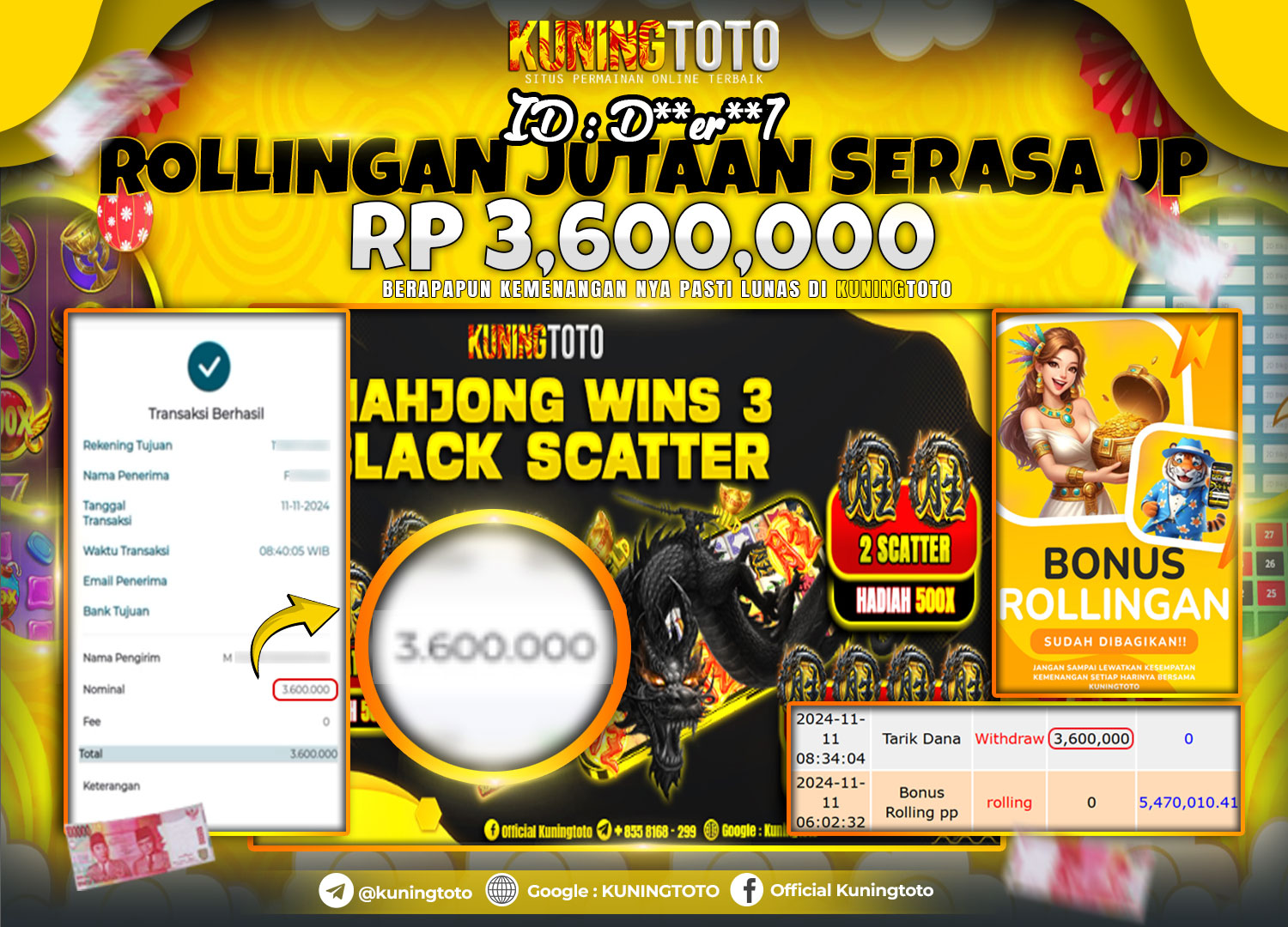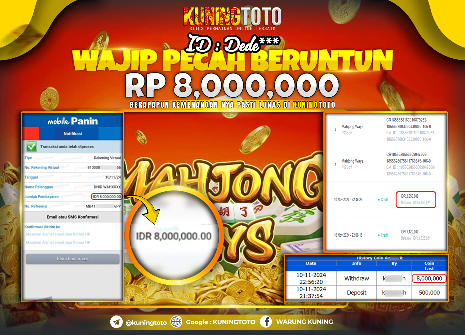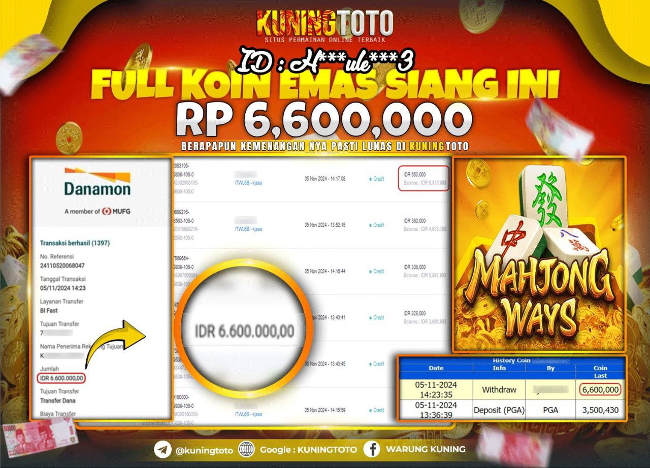Bukti JackPot Slot Member KUNINGTOTO 10 November 2024 Mahjong Ways Memenangkan Jackpot dalam permainan slot online, yang saat ini sangat…