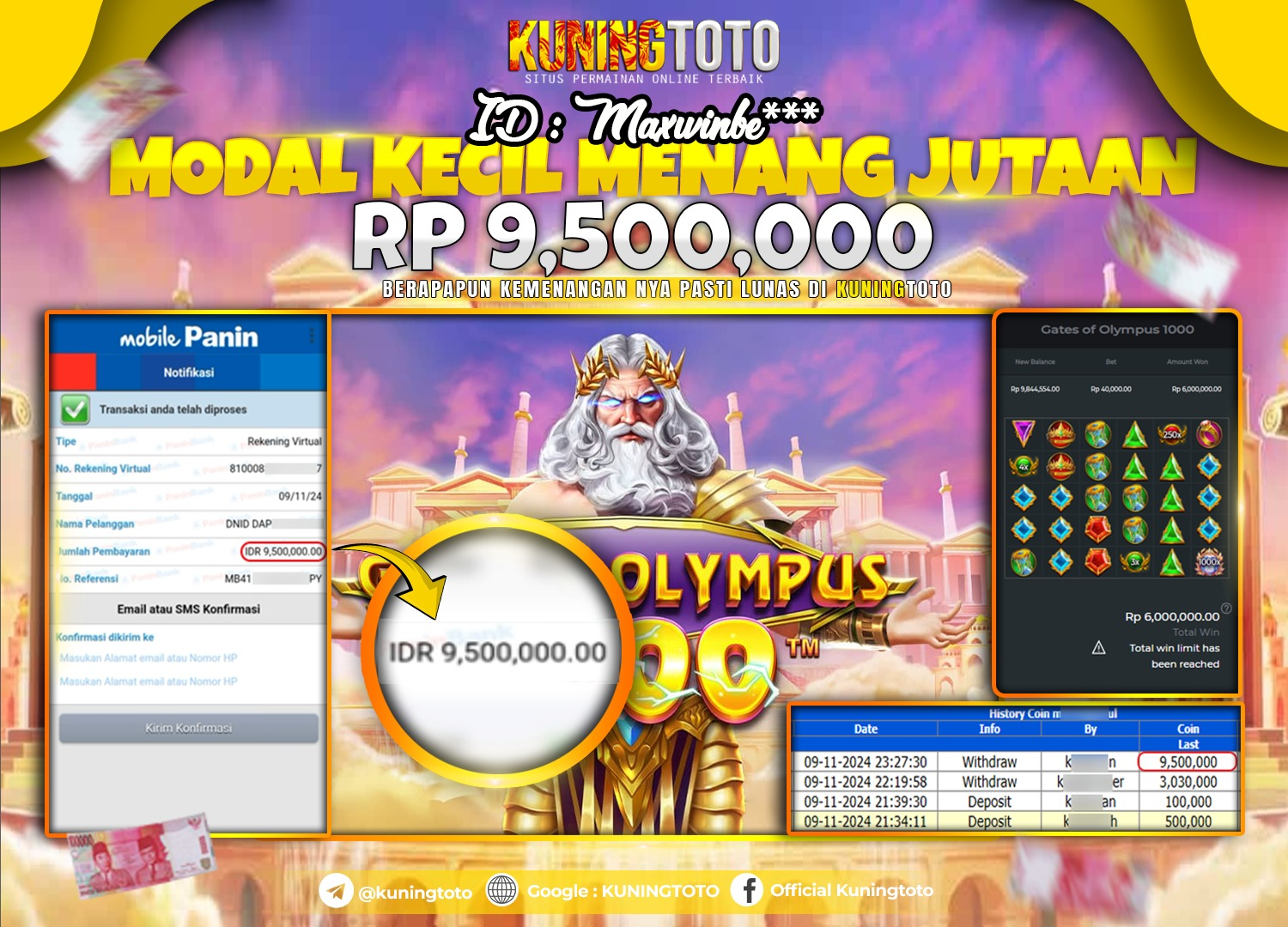 Bukti JackPot Slot Member KUNINGTOTO 09 November 2024 Gates Of Olympus 1000 Memenangkan Jackpot Permainan Slot online sangat populer di…