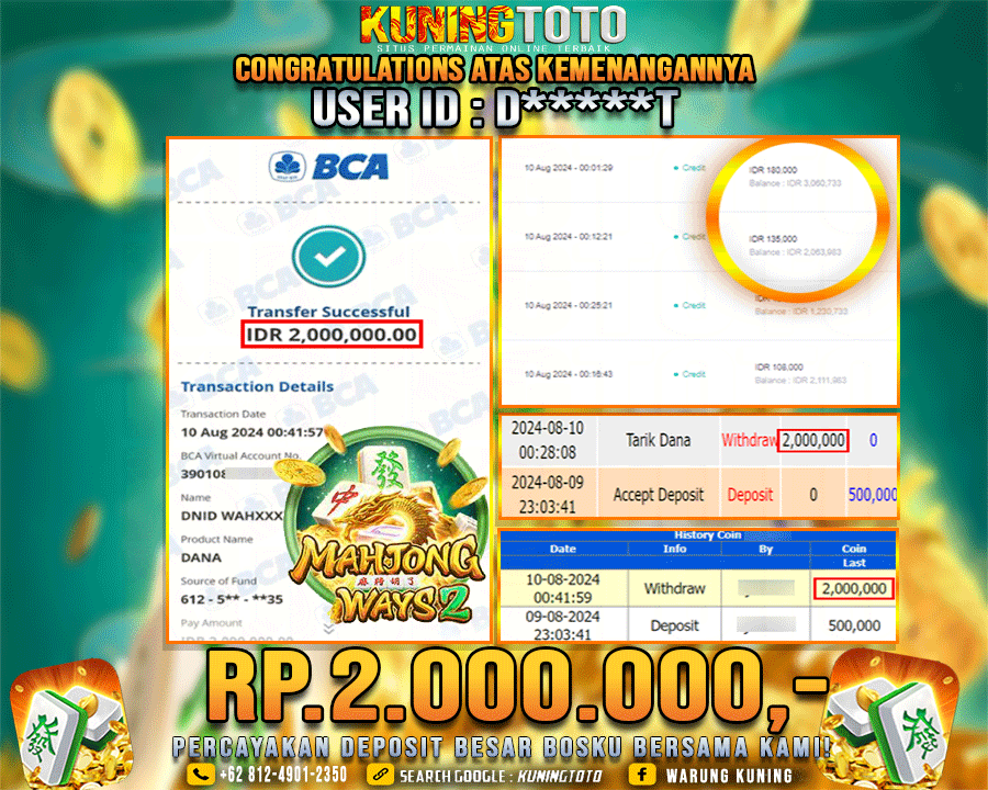 Bukti JP Slot Member KUNING TOTO 10 Agustus 2024 Mahjong Ways 2 Memenangkan Jackpot Permainan Slot online sangat populer di…