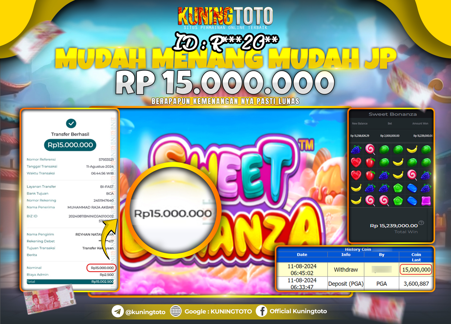 Bukti JP Slot Member KUNING TOTO 11 August 2024 Sweet Bonanza Memenangkan Jackpot Permainan Slot online sangat populer di kalangan…