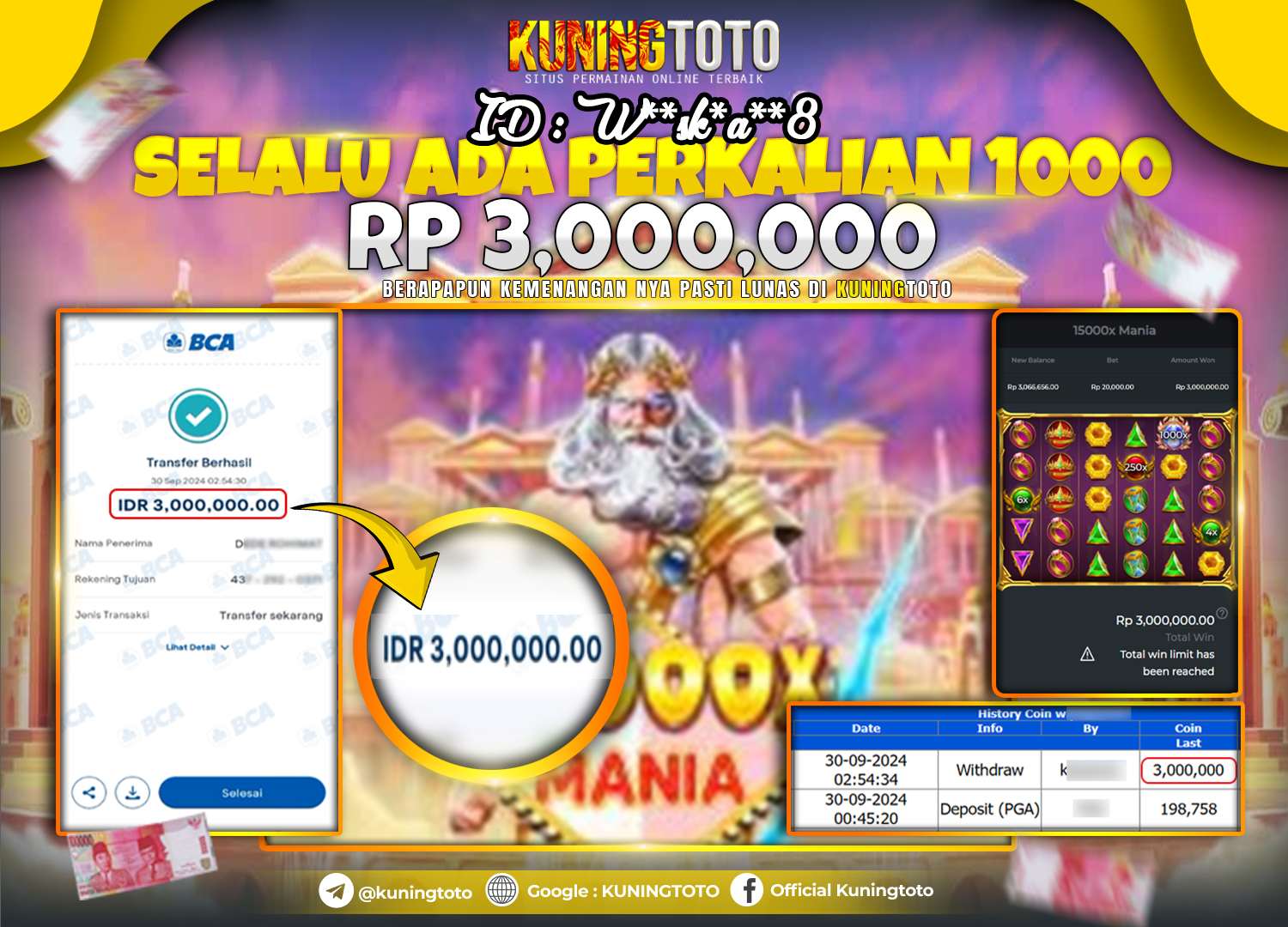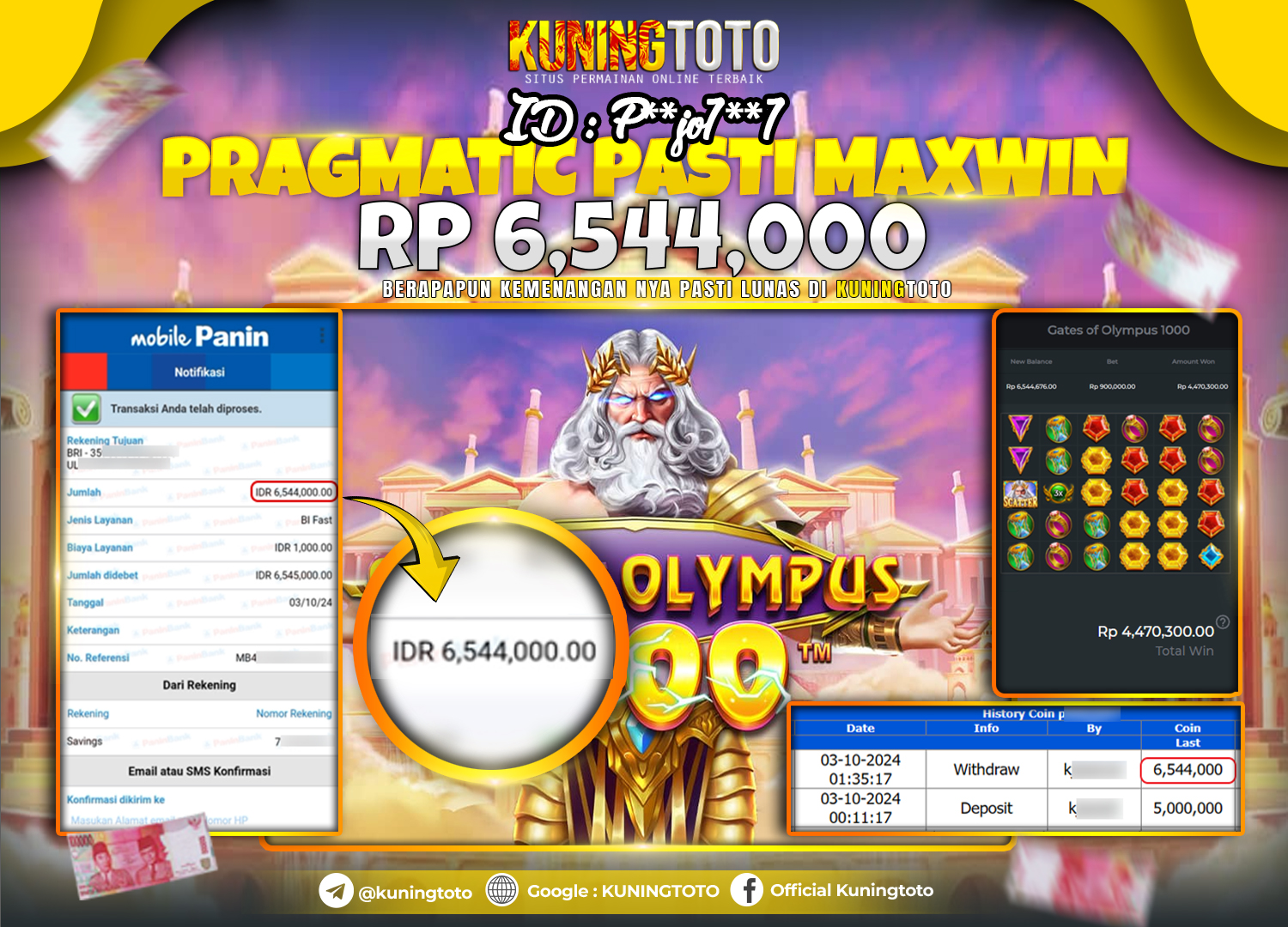 Bukti JackPot Slot Member KUNINGTOTO 03 Oktober 2024 Gates Of Olympus 1000 Memenangkan Jackpot Permainan Slot online sangat populer di…