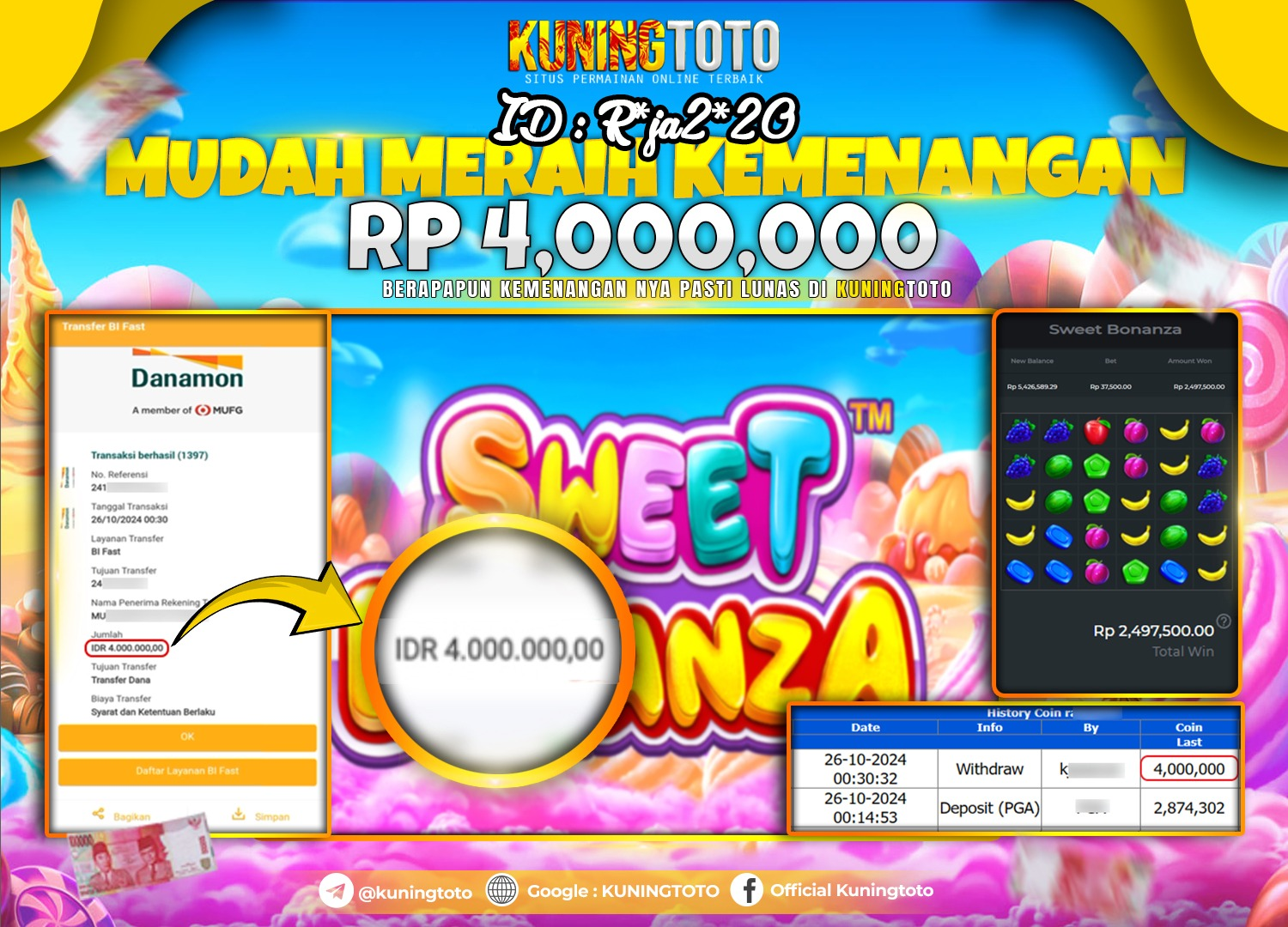 Bukti JackpoT Slot Member KUNING TOTO 26 Oktober 2024 Sweet Bonanza Memenangkan Jackpot Permainan Slot online sangat populer di kalangan…