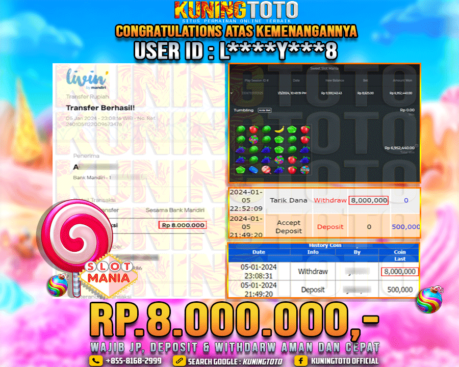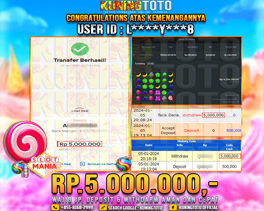 Bukti JP Slot Member KUNING TOTO 05 Januari 2024 Sweet Slot Mania Memenangkan Jackpot Permainan Slot online sangat populer di…