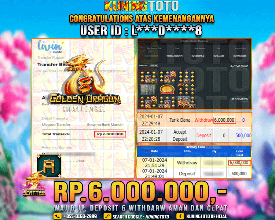 Bukti JP Slot Member KUNING TOTO 07 Januari 2024 8 Golden Dragon Memenangkan Jackpot Permainan Slot online sangat populer di…