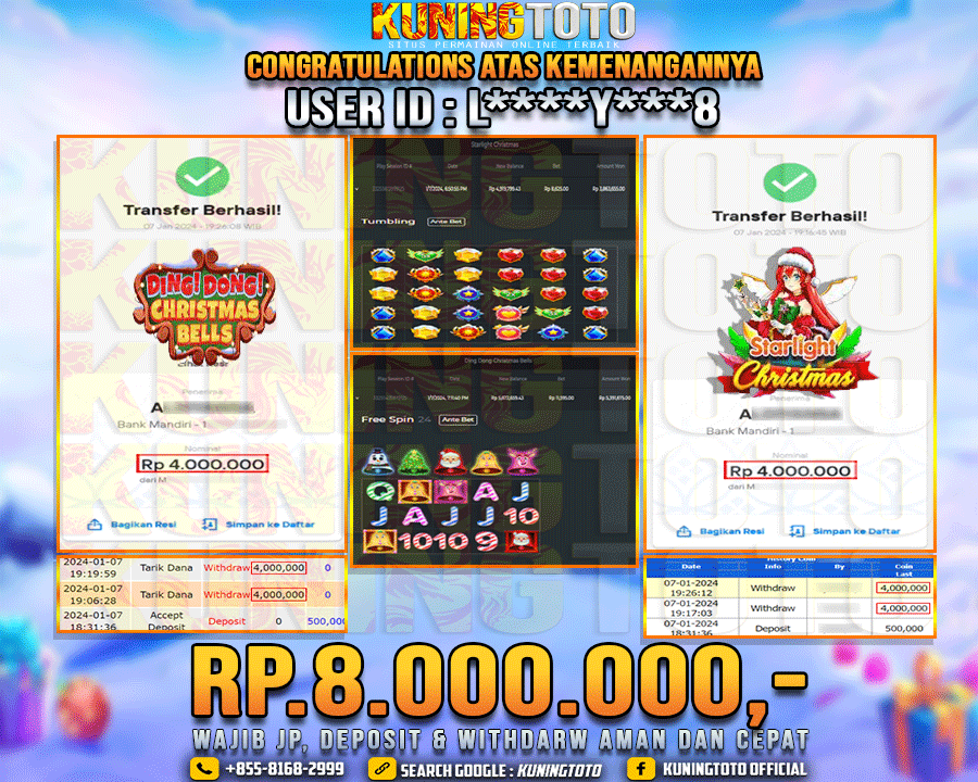 Bukti JP Slot Member KUNING TOTO 07 Januari 2024 Ding!dong! Christmas bell Memenangkan Jackpot Permainan Slot online sangat populer di…
