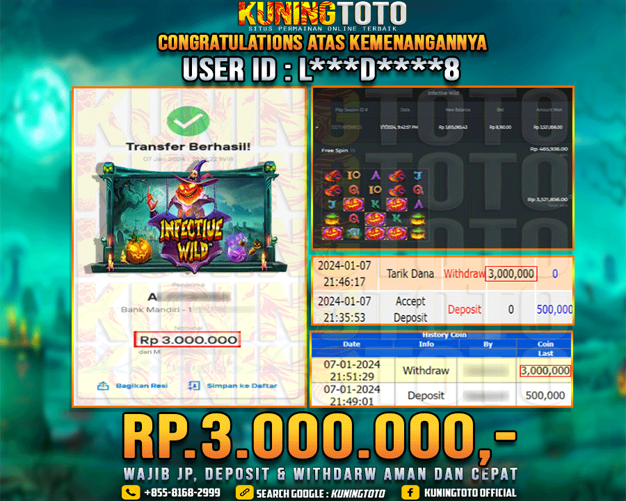 Bukti JP Slot Member KUNING TOTO 07 Januari 2024 Infective Wild Memenangkan Jackpot Permainan Slot online sangat populer di kalangan…
