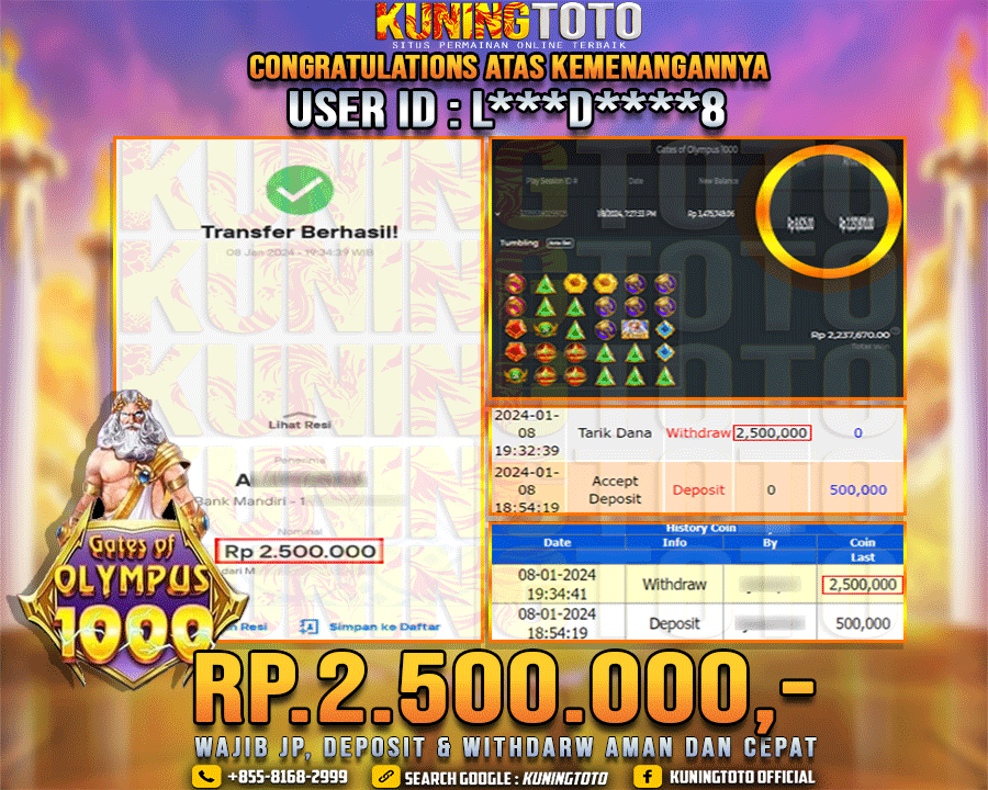 Bukti JP Slot Member KUNING TOTO 08 Januari 2024 Gate of Olympus 1000 Memenangkan Jackpot Permainan Slot online sangat populer…