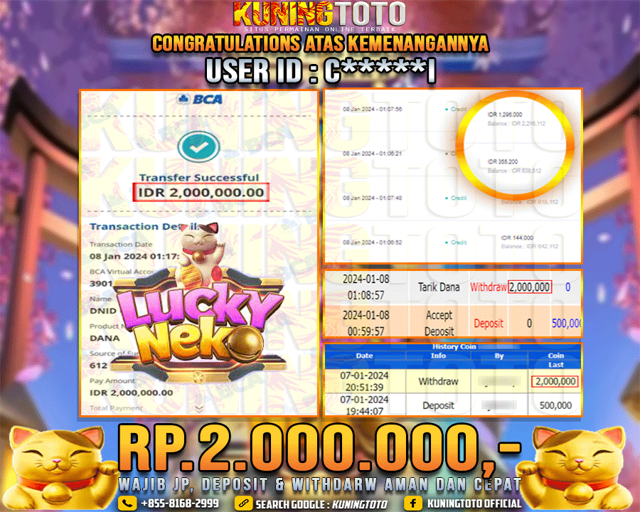 Bukti JP Slot Member KUNING TOTO 08 Januari 2024 Lucky Neko Memenangkan Jackpot Permainan Slot online sangat populer di kalangan…