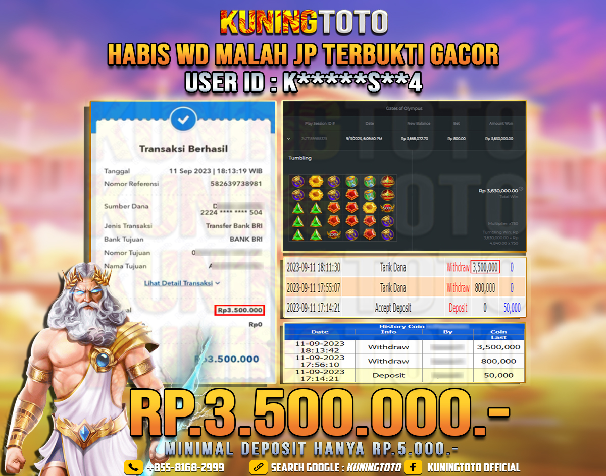 Bukti JP Slot Member KUNING TOTO 11 September 2023 Gates Of Olympus Memenangkan Jackpot Permainan Slot online sangat populer di…