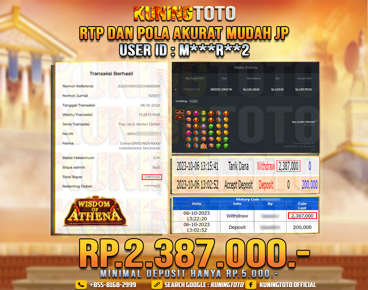 Bukti JP Slot Member KUNING TOTO 06 Oktober 2023 Wisdom of Athena Memenangkan Jackpot Permainan Slot online sangat populer di…