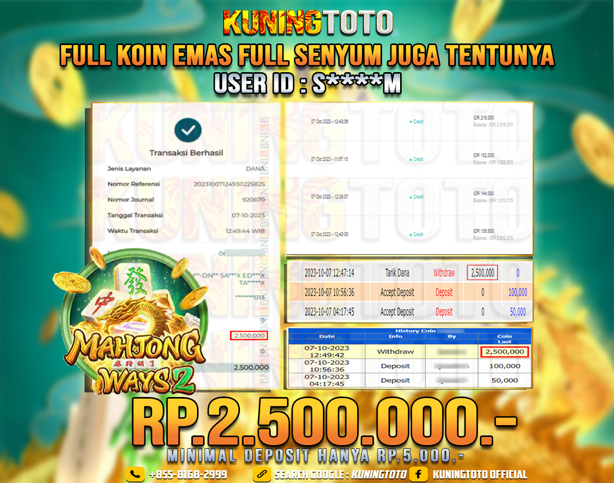 Bukti JP Slot Kuning toto 09 Oktober 2023 Mahjong Ways 2