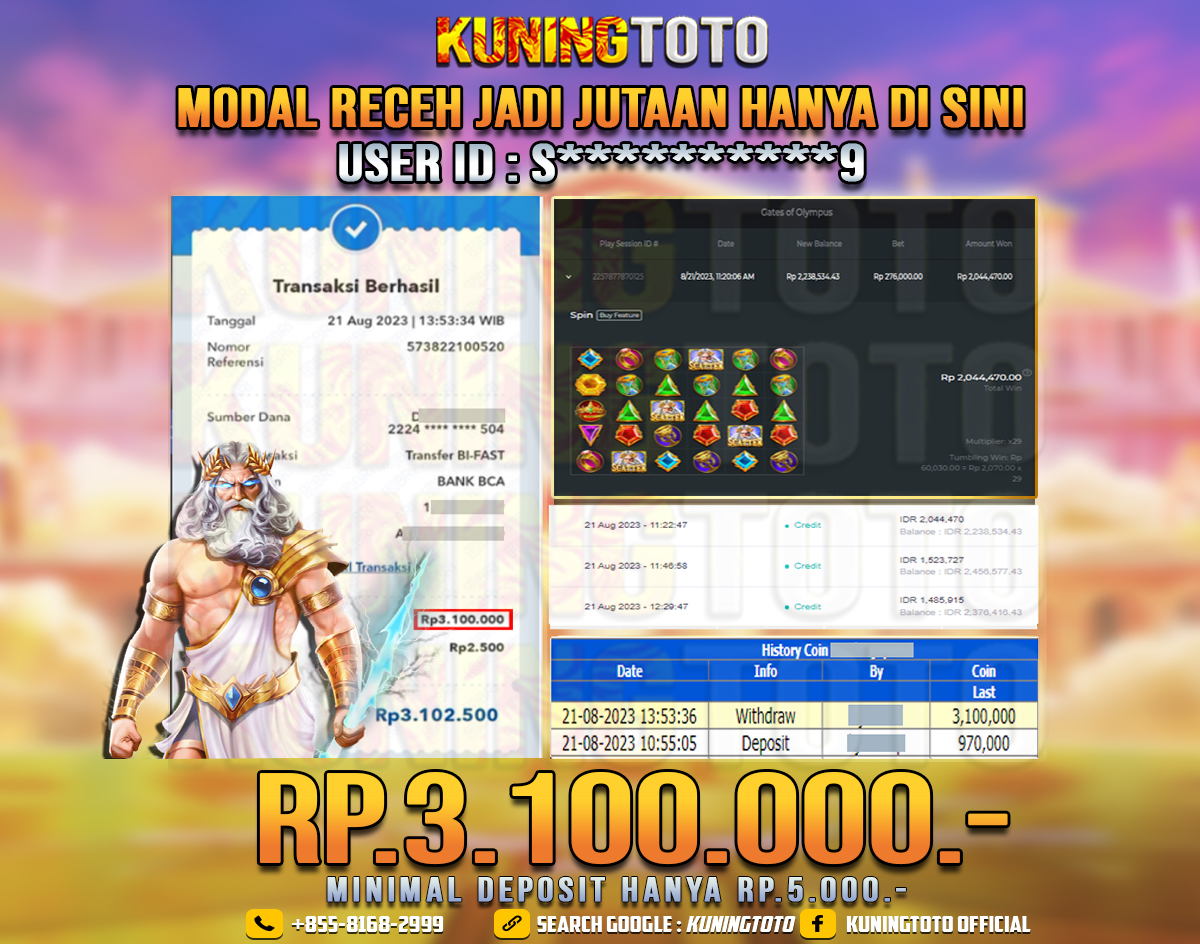 Bukti JP SLOT Member KUNING TOTO 25 Agustus 2023 Memenangkan Jackpot Permainan Slot online sangat populer di kalangan pemain judi…