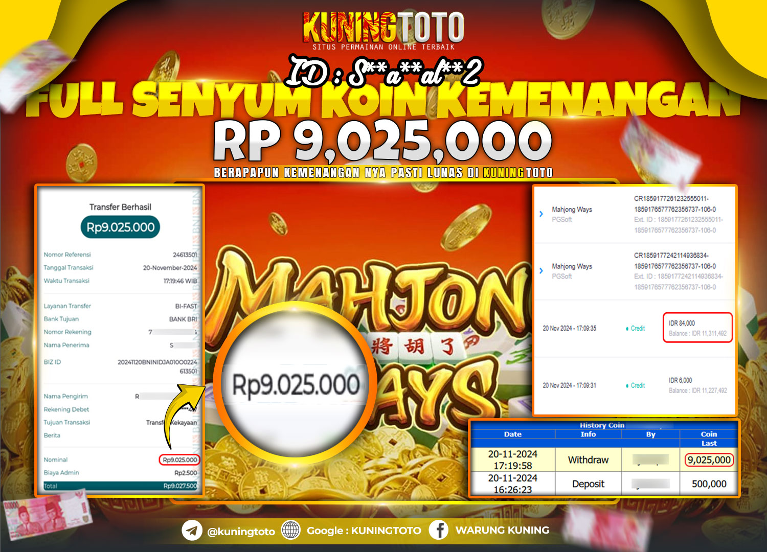 Bukti JackPot Slot Member KUNINGTOTO 20 Nov 2024 Mahjong Ways Memenangkan Jackpot Permainan Slot online sangat populer di kalangan pemain…