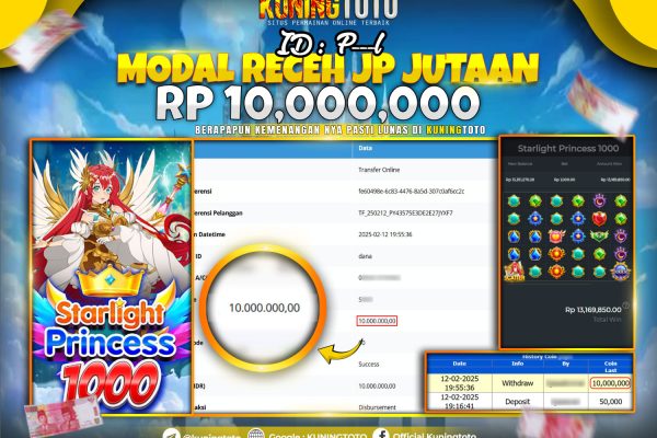 Bukti JackPot Slot Member KUNINGTOTO 12 Februari 2025 Slot Starlight Princess 1000 Memenangkan Jackpot Permainan Slot online sangat populer di…