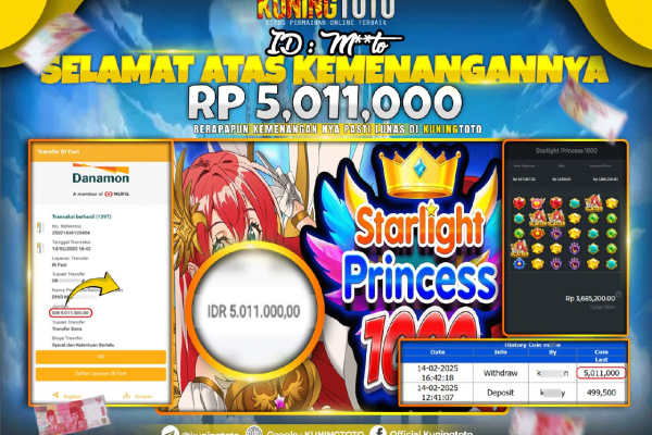 Bukti Kemenangan Slot KuningToto 14 February 2025 Slot Starlight Princess 1000