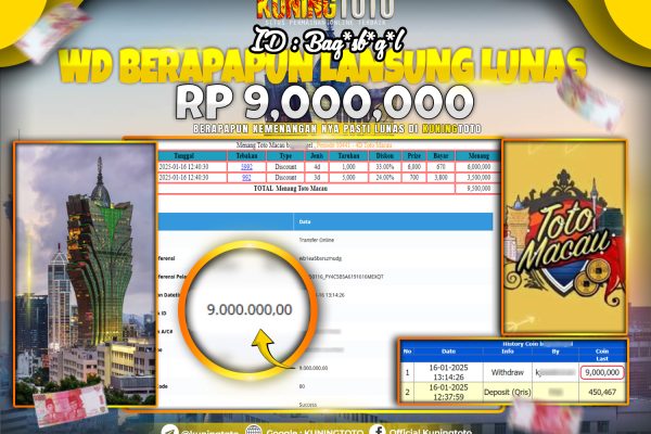 Bukti JackPot Togel Member KUNINGTOTO 16 Januari 2025 Pasaran Totomacau Memenangkan Jackpot Permainan Slot online sangat populer di kalangan pemain…