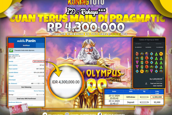 Bukti JackPot Slot Member KUNINGTOTO 23 November 2024 Gates Of Olympus 1000 Memenangkan Jackpot Permainan Slot online sangat populer di…