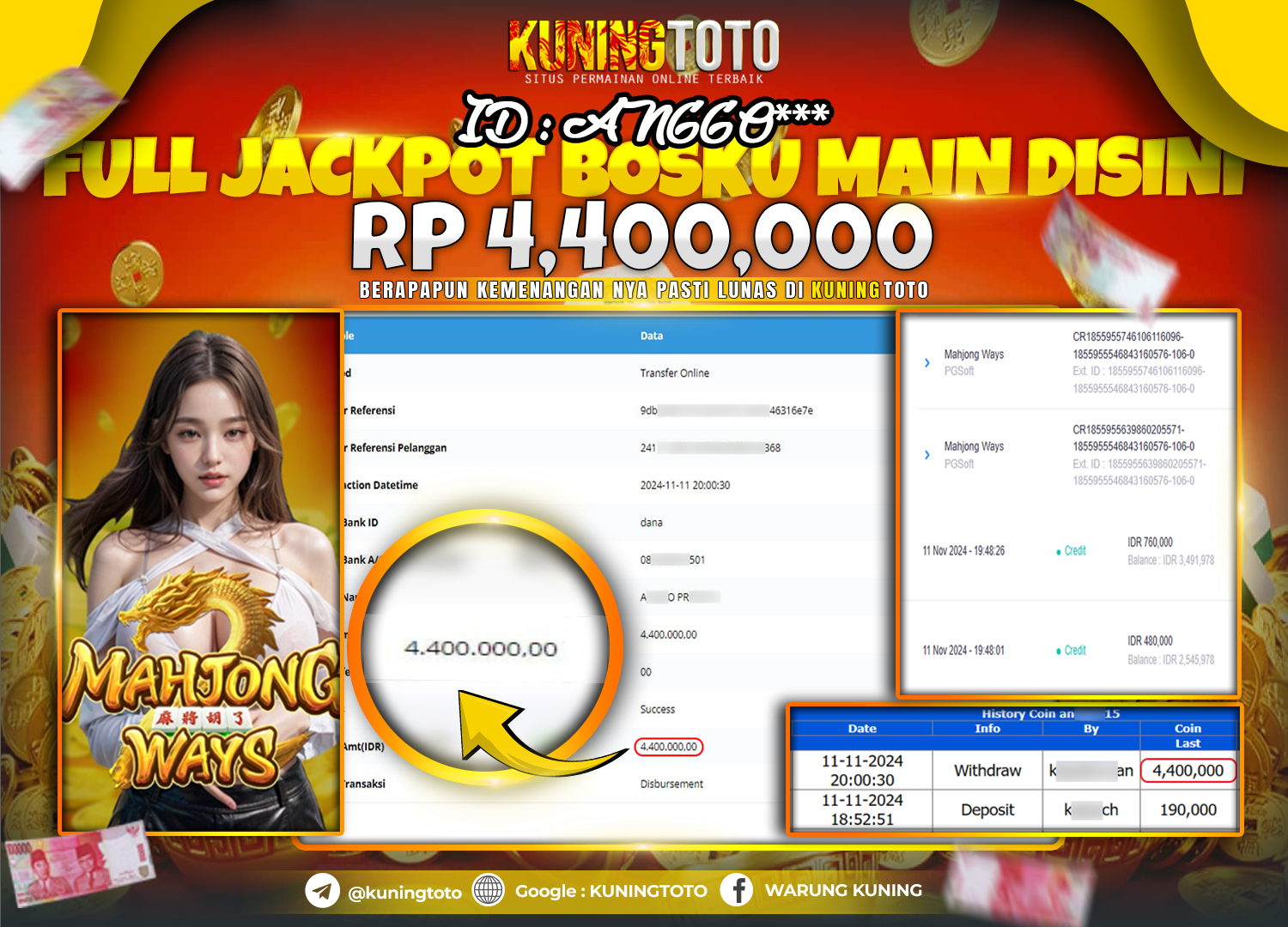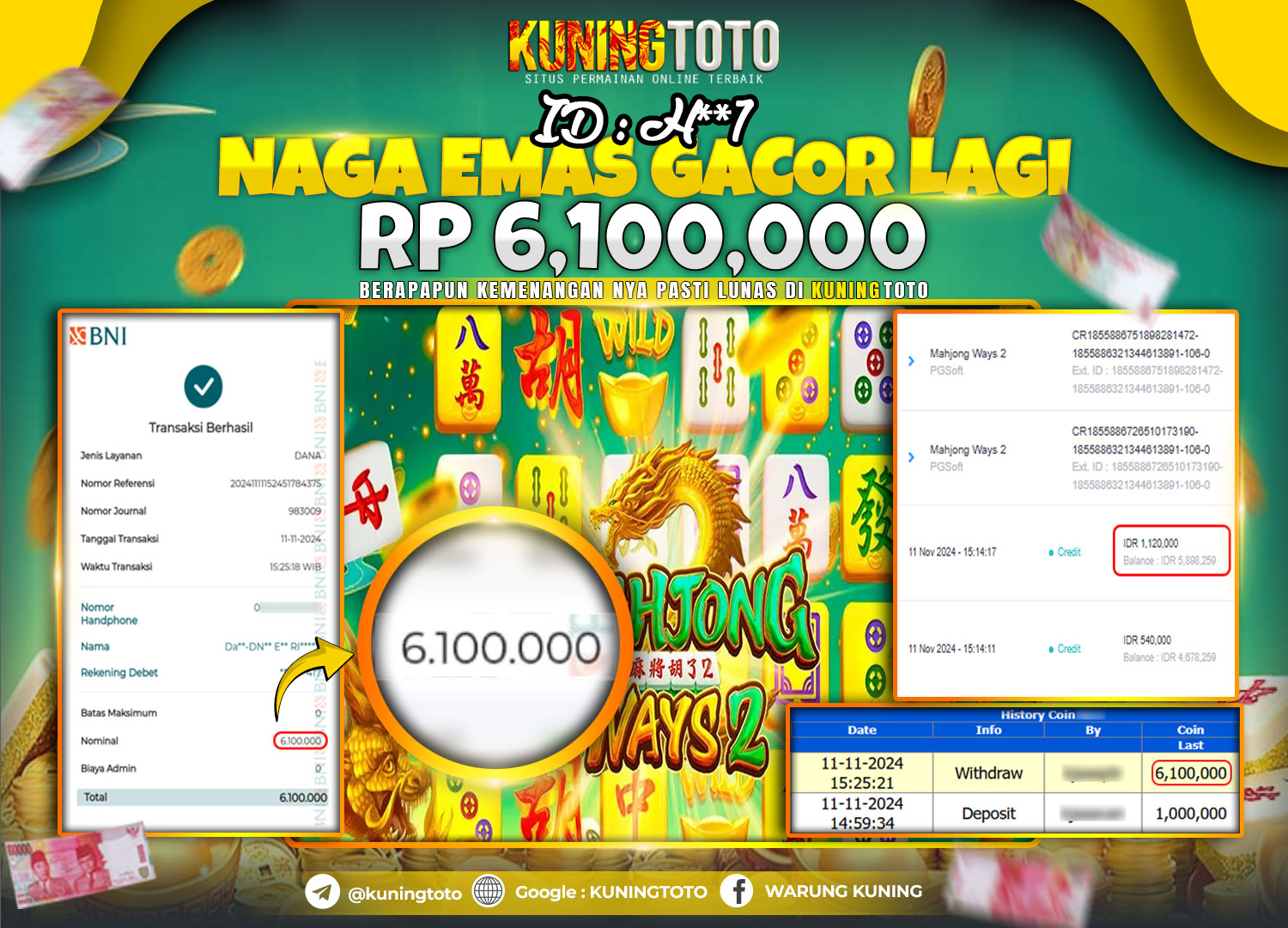 Bukti JackPot Slot Member KUNINGTOTO 11 November 2024 Mahjong Ways Memenangkan Jackpot dalam permainan slot online, yang saat ini sangat…