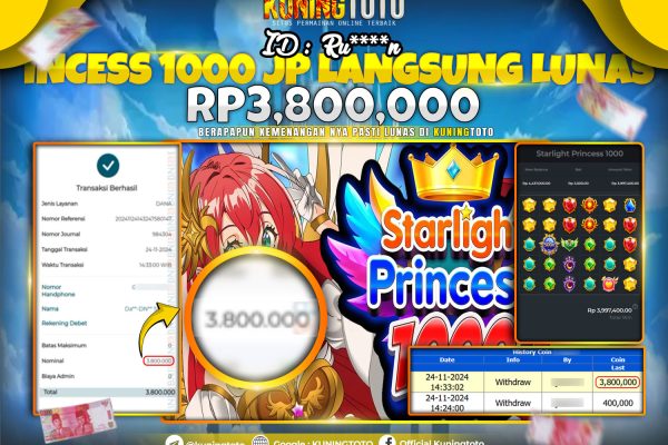 Bukti JackPot Slot Member KUNINGTOTO 20 November 2024 Starlight Princess 1000 Memenangkan Jackpot Permainan Slot online sangat populer di kalangan…