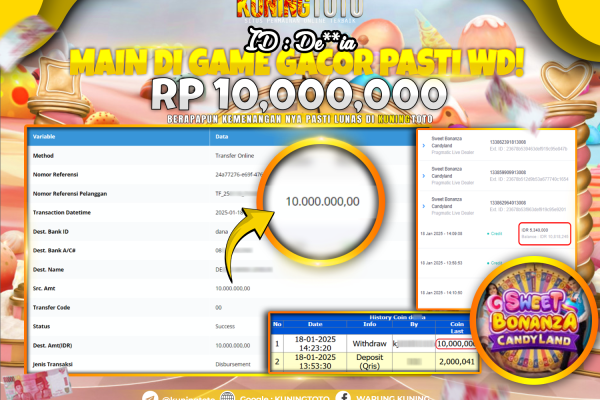 Bukti JackPot Member KUNINGTOTO 18 Januari 2025 Sweet Bonanza Candyland Memenangkan Jackpot Permainan Slot online sangat populer di kalangan pemain…