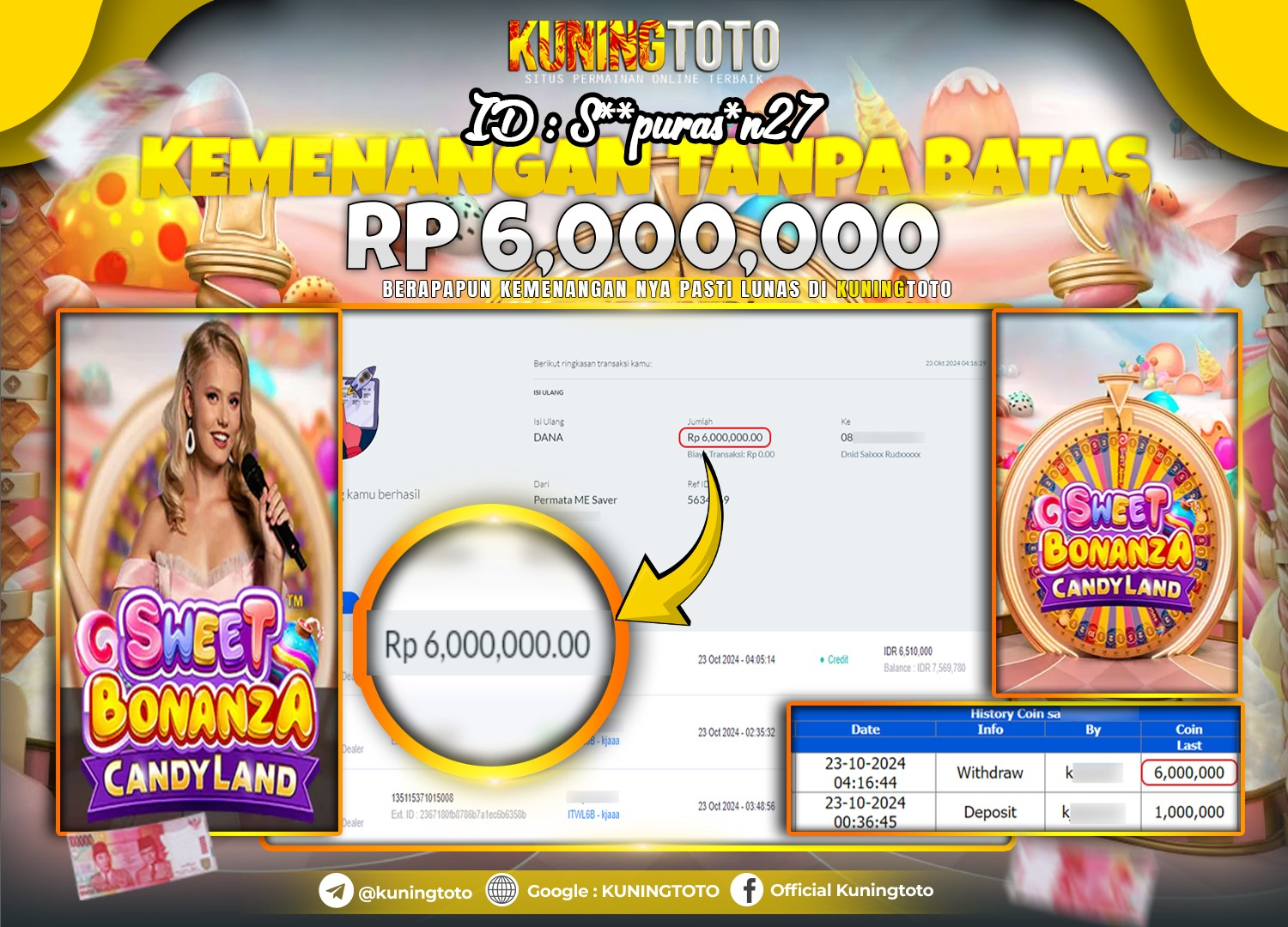 Bukti JackpoT Slot Member KUNING TOTO 23 Oktober 2024 Sweet Bonanza Candyland Memenangkan Jackpot Permainan Slot online sangat populer di…
