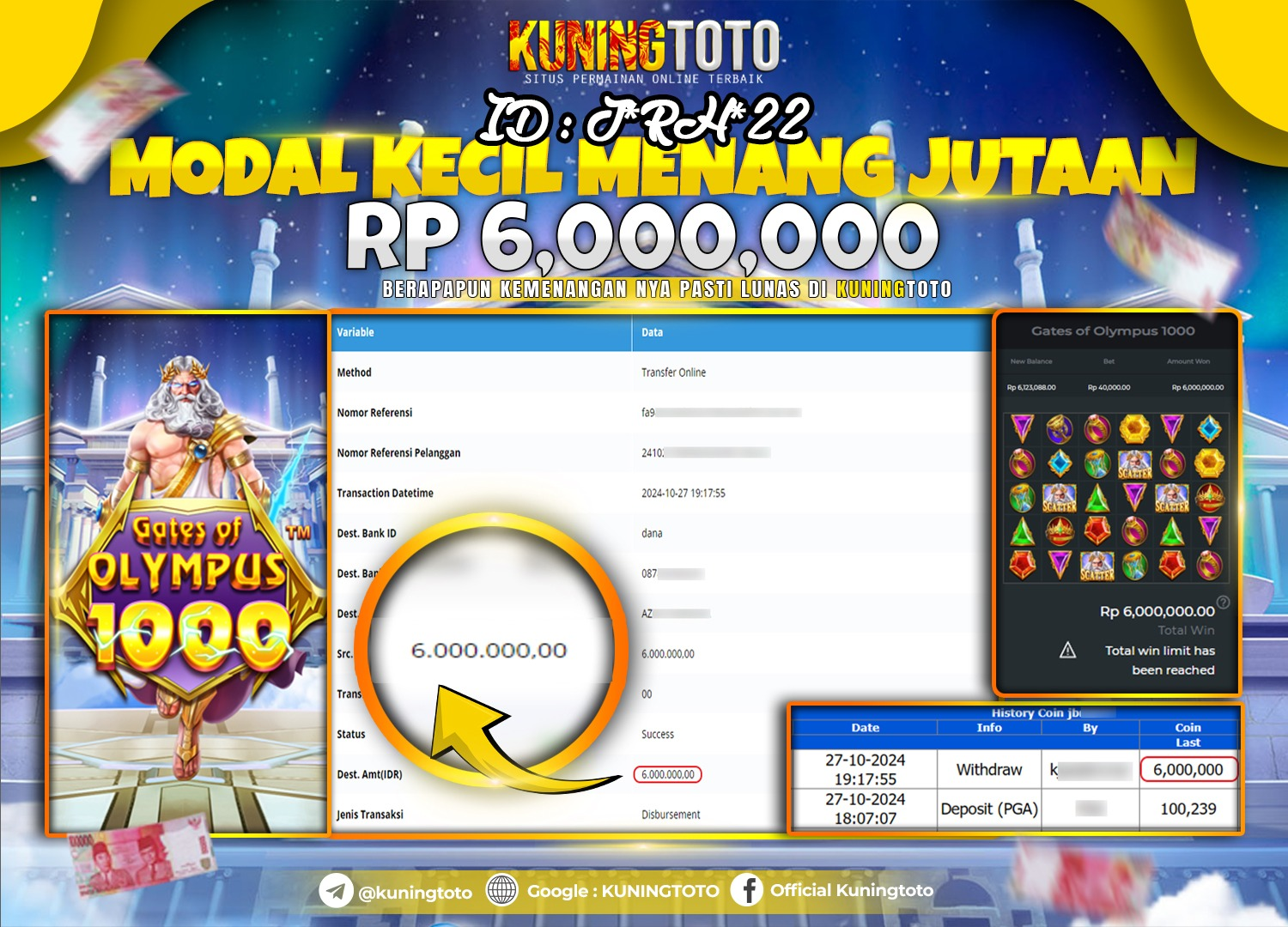Bukti JackPot Slot Member KUNINGTOTO 27 Oktober 2024 Gates Of Olympus 1000 Memenangkan Jackpot Permainan Slot online sangat populer di…