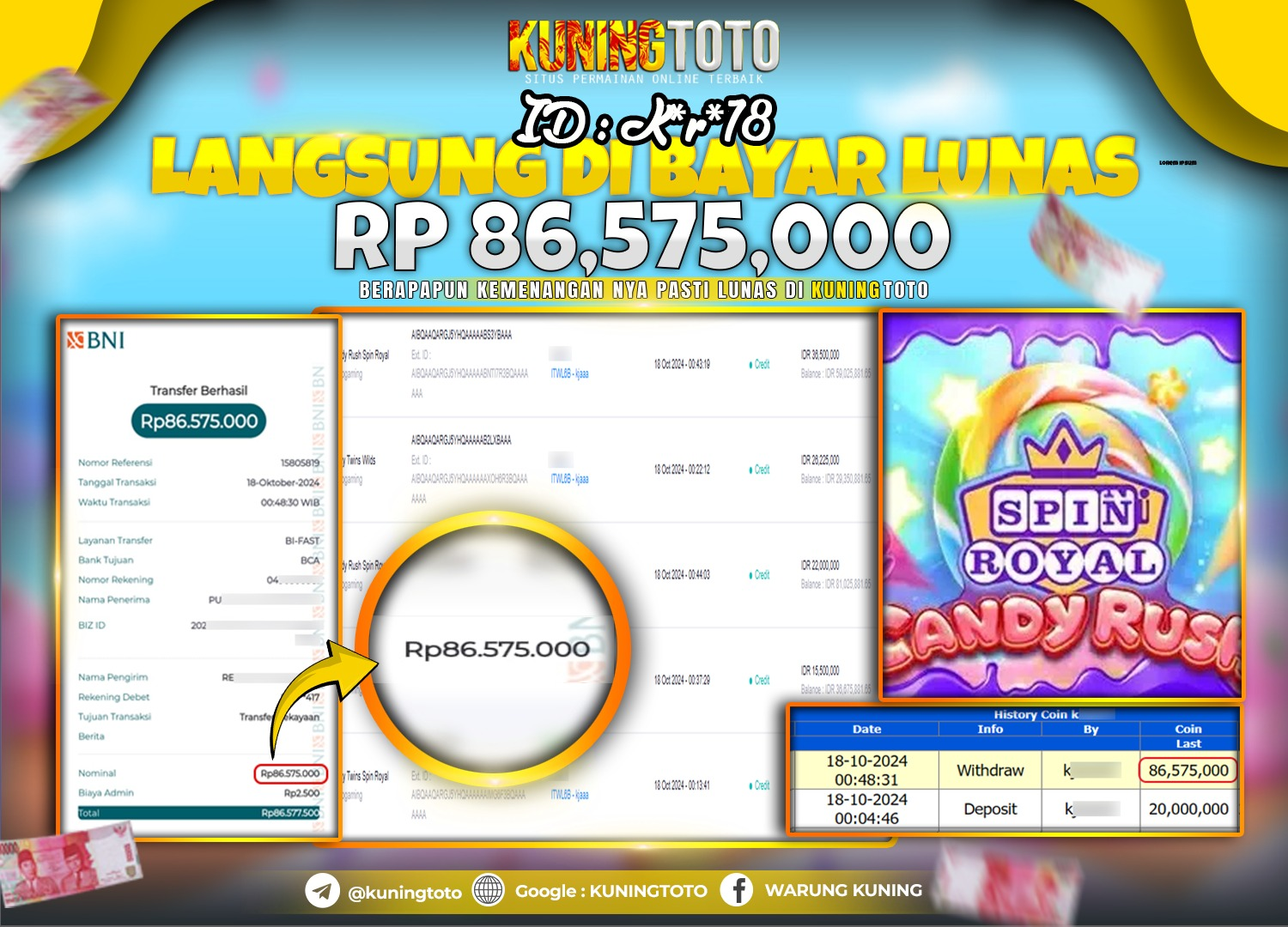 Bukti JackPot Slot Member KUNINGTOTO 18 Oktober 2024 Royal Spin Candy Rush Memenangkan Jackpot Permainan Slot online sangat populer di…