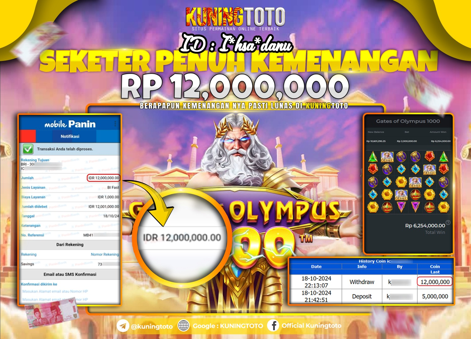 Bukti JackPot Slot Member KUNINGTOTO 18 Oktober 2024 Gates Of Olympus 1000 Memenangkan Jackpot Permainan Slot online sangat populer di…