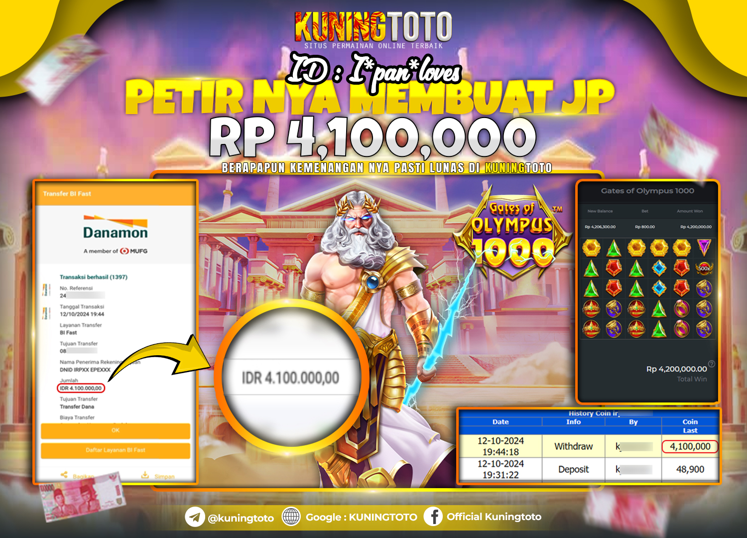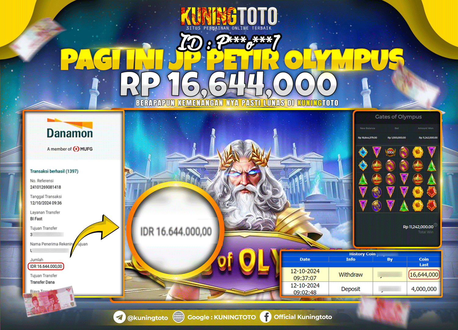Bukti JackPot Slot Member KUNINGTOTO 10 Oktober 2024 Gates Of Olympus 1000 Memenangkan Jackpot Permainan Slot online sangat populer di…