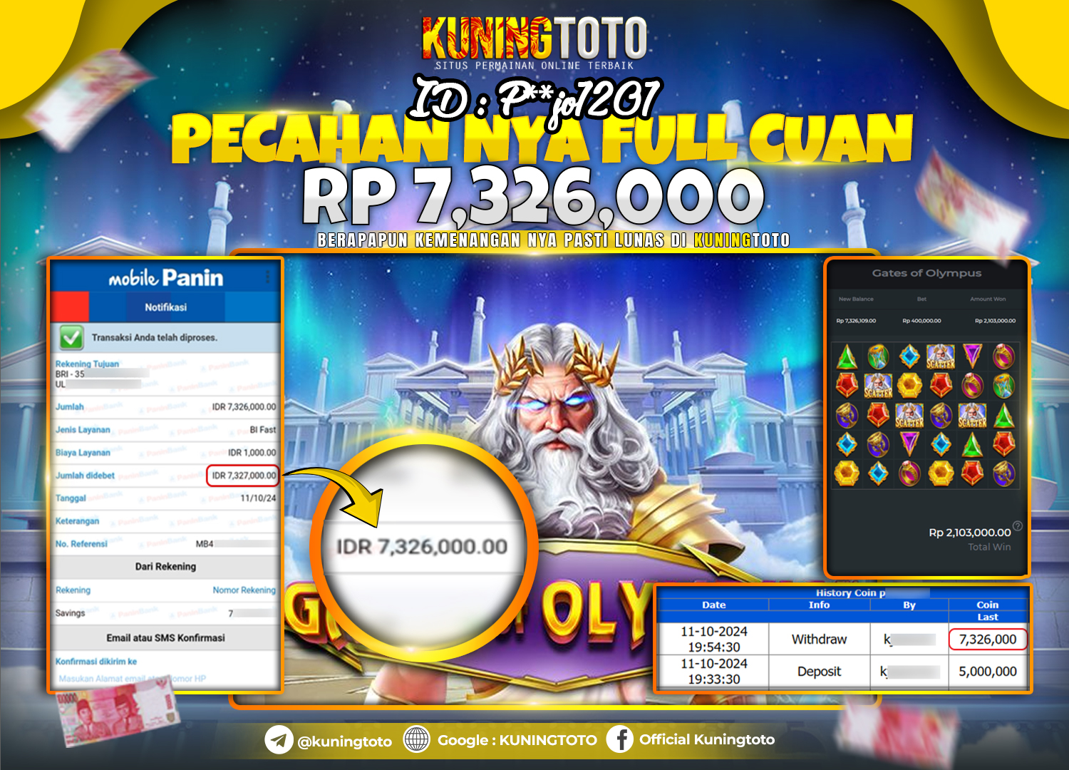 Bukti JackPot Slot Member KUNINGTOTO 11 Oktober 2024 Gate of Olympus Memenangkan Jackpot Permainan Slot online sangat populer di kalangan…