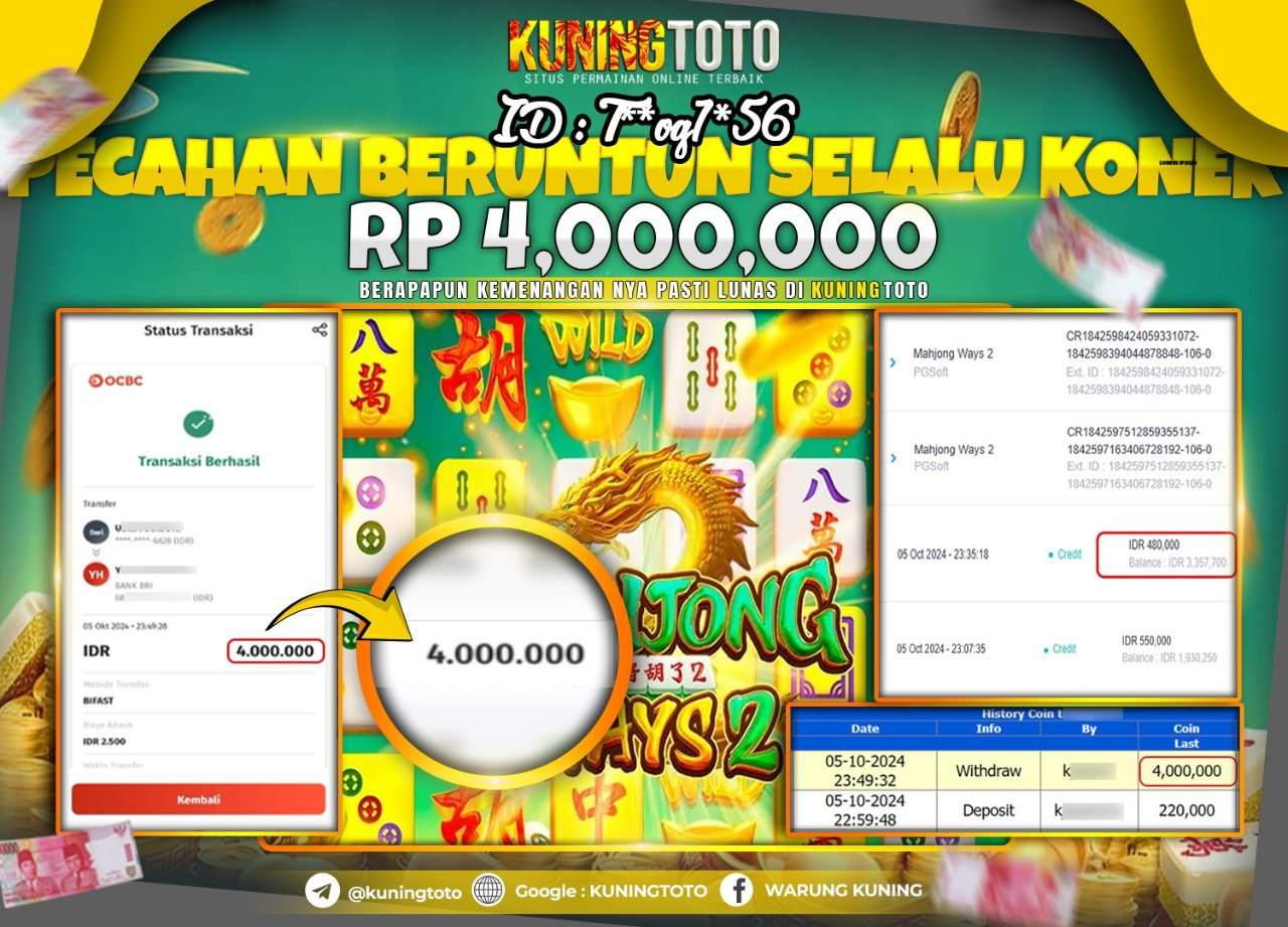 Bukti JP Slot Member KUNING TOTO 05 Oktober 2024 Mahjong Ways 2 Memenangkan Jackpot Permainan Slot online sangat populer di…