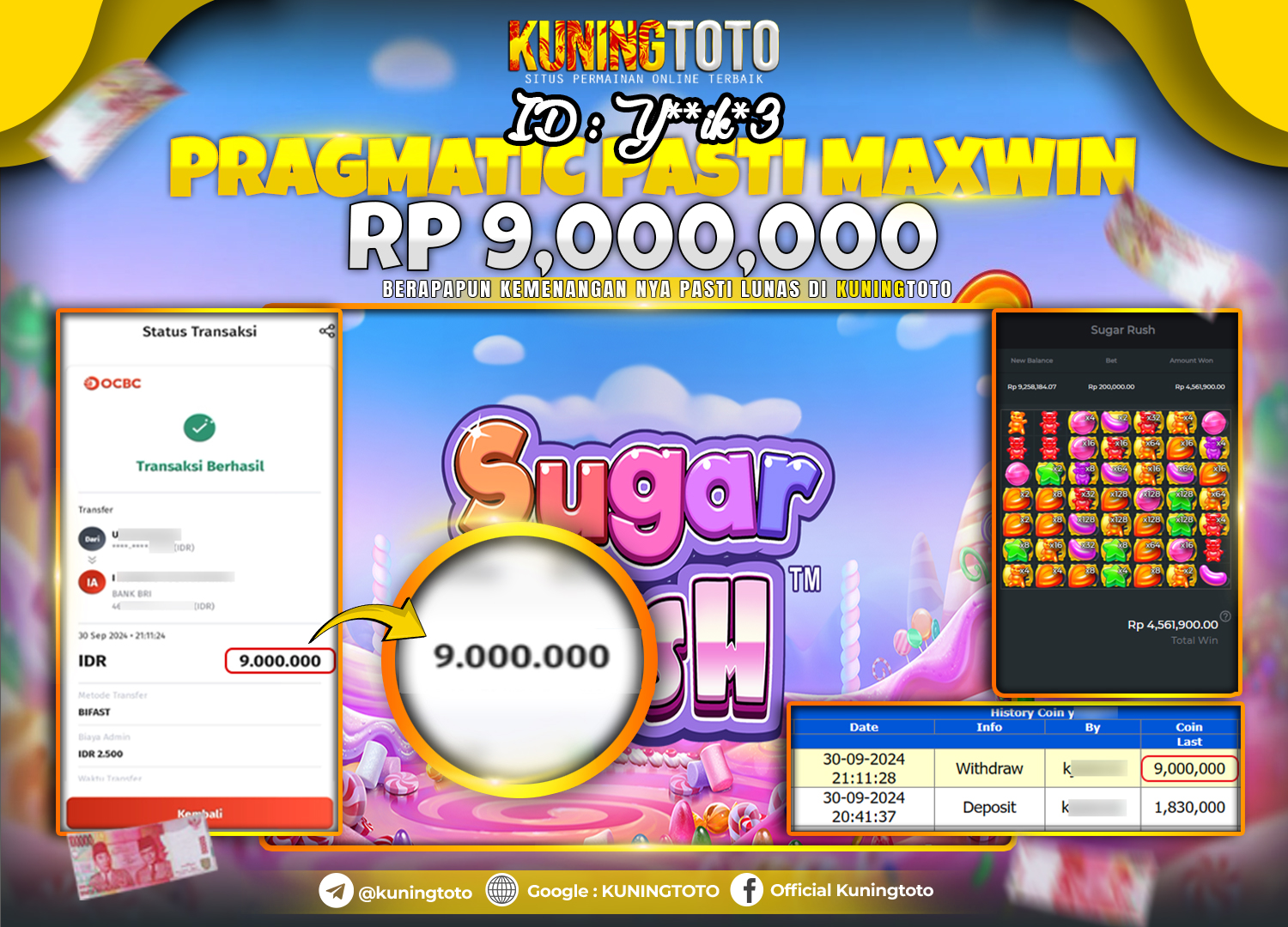 Bukti JP Slot Member KUNING TOTO 30 September 2024 Sugar Rush Memenangkan Jackpot Permainan Slot online sangat populer di kalangan…