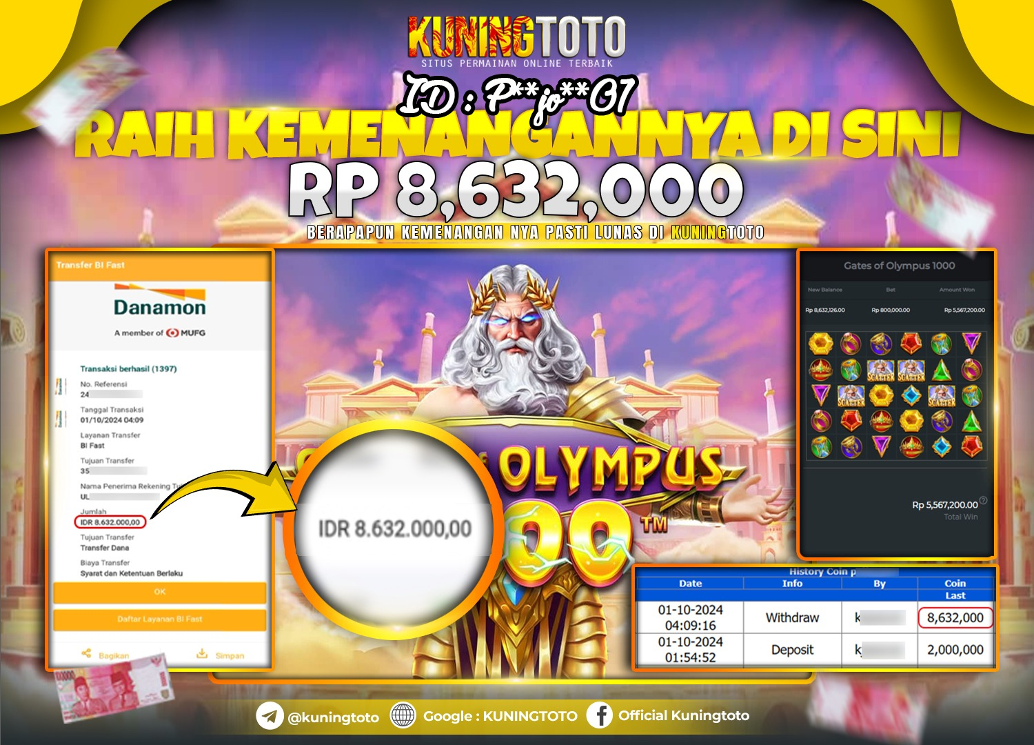 Bukti JP Slot KuningToto 01 Oktober 2024 Gates Of Olympus 1000