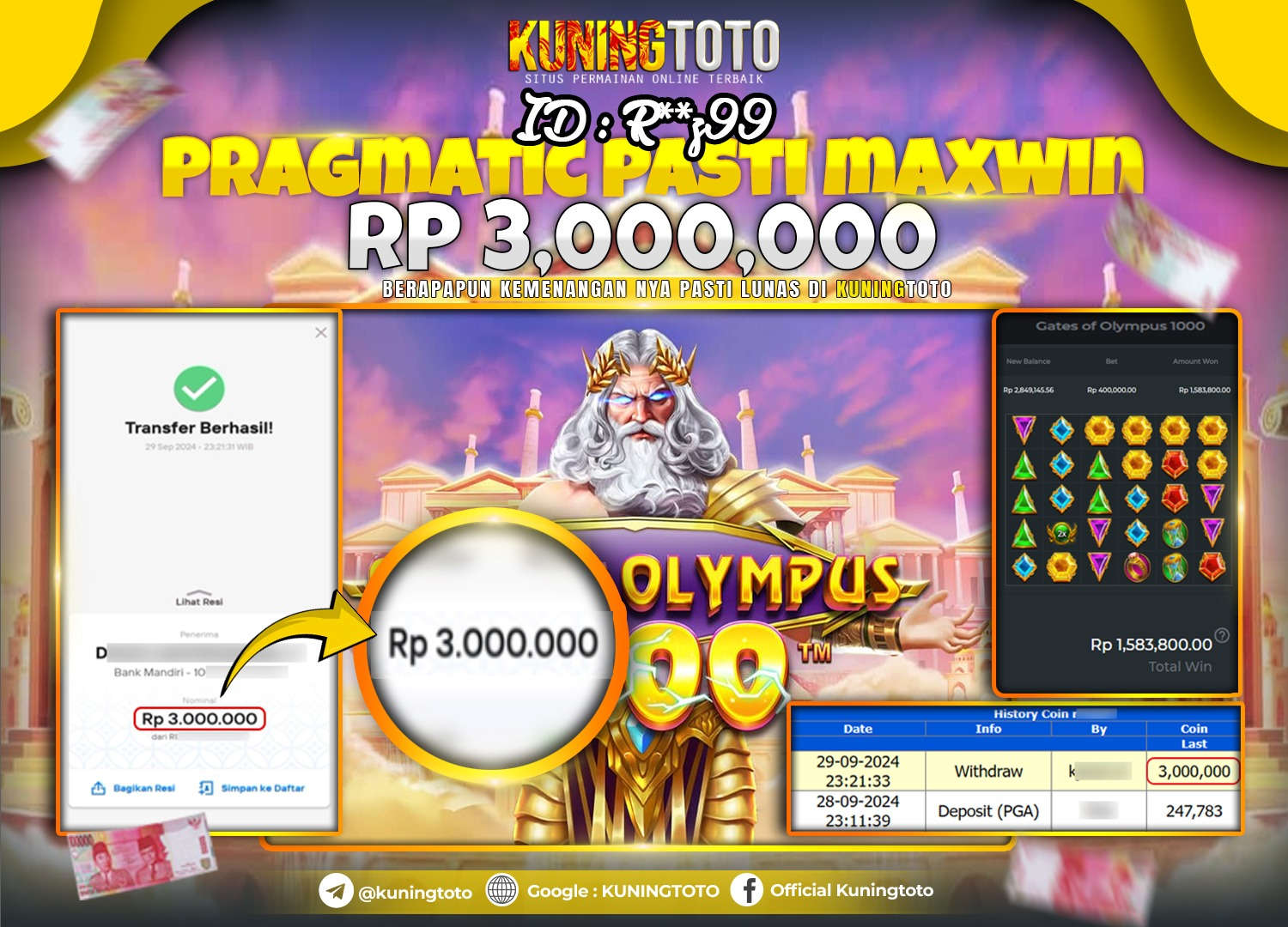 Bukti JackPot Slot Member KUNINGTOTO 01 Oktober 2024 Gates Of Olympus 1000 Memenangkan Jackpot Permainan Slot online sangat populer di…