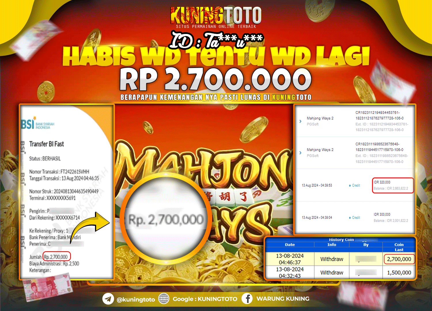 Bukti JP Slot Member KUNING TOTO 13 August 2024 Mahjong Ways Memenangkan Jackpot Permainan Slot online sangat populer di kalangan…