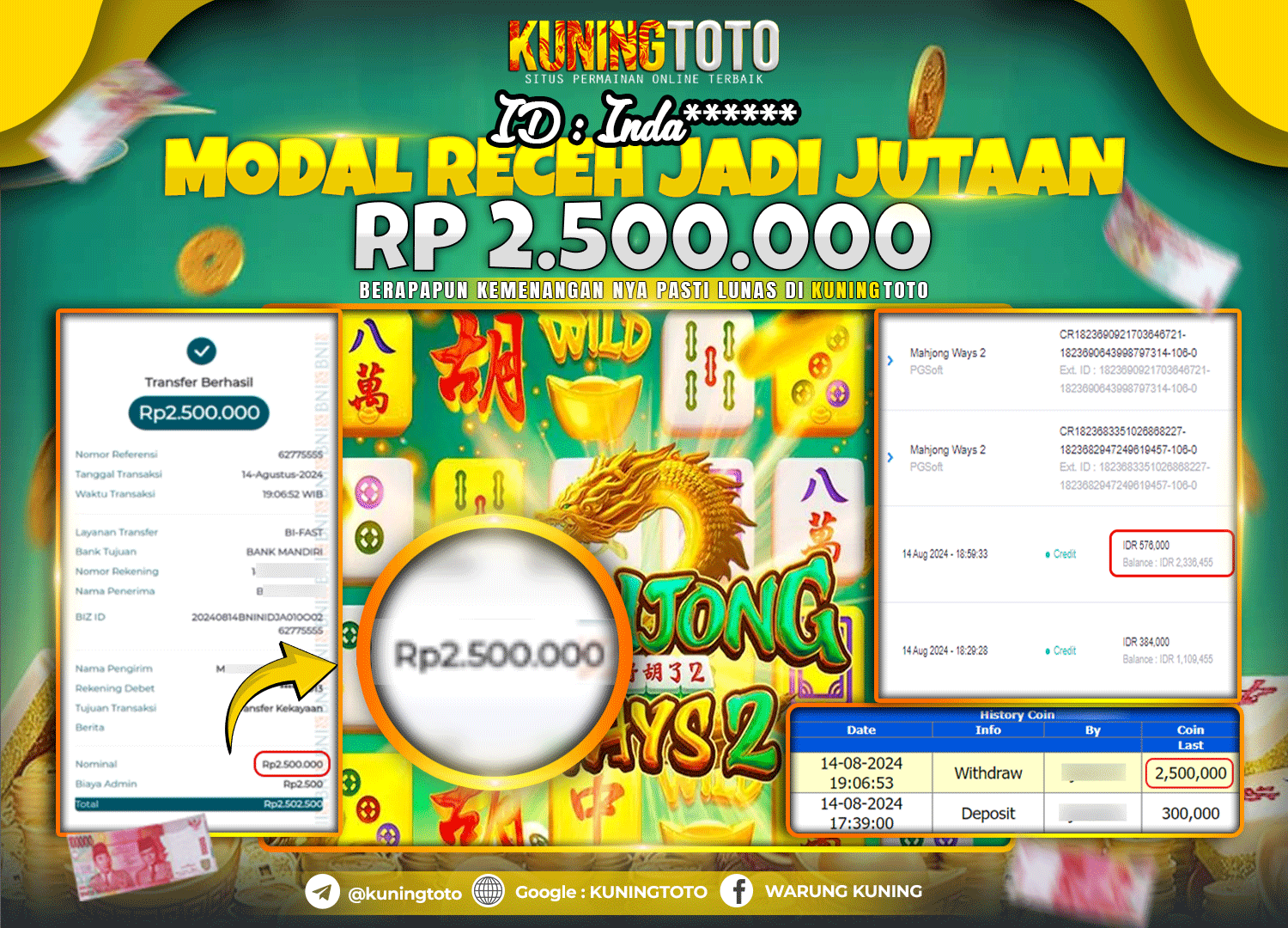 Bukti JP Slot Member KUNING TOTO 10 Agustus 2024 Mahjong ways 2 Memenangkan Jackpot Permainan Slot online sangat populer di…