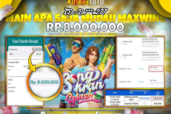 Bukti JackPot Slot Member KUNINGTOTO 10 Agustus 2025 Slot Songkran Splash Memenangkan Jackpot Permainan Slot online sangat populer di kalangan…