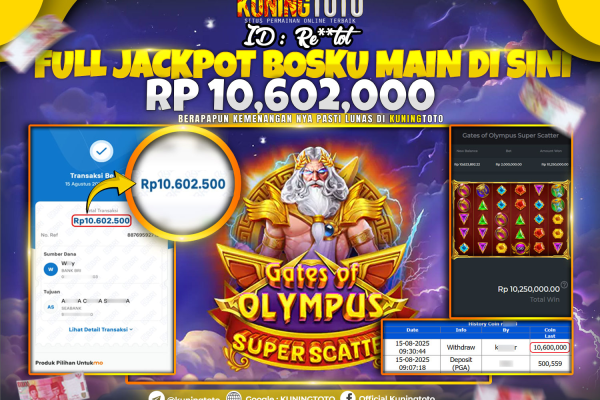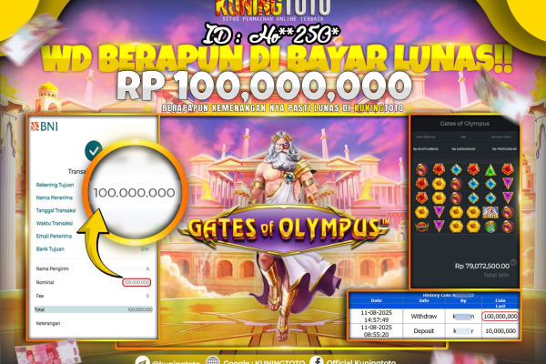 Bukti JackPot Slot Member KUNINGTOTO 11 Agustus 2025 Slot Gates of Olympus Memenangkan Jackpot Permainan Slot online sangat populer di…