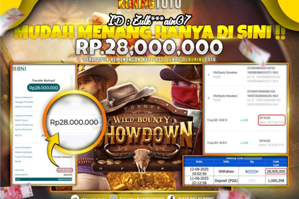 Bukti JackPot Slot Member KUNINGTOTO 12 Agustus 2025 Slot Wild Bounty Showdown Memenangkan Jackpot Permainan Slot online sangat populer di…