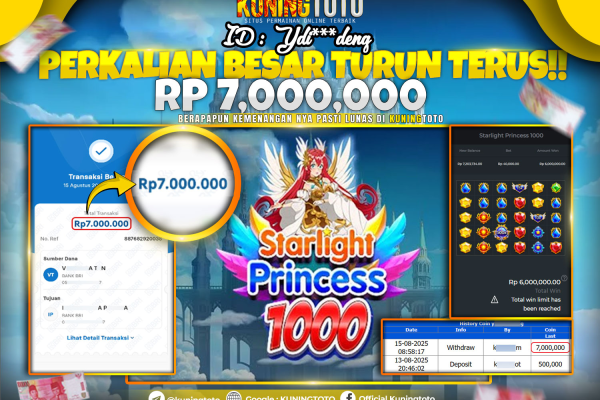 Bukti Kemenangan Slot KuningToto 15 Agustus 2025 Slot Starlight Princess 1000